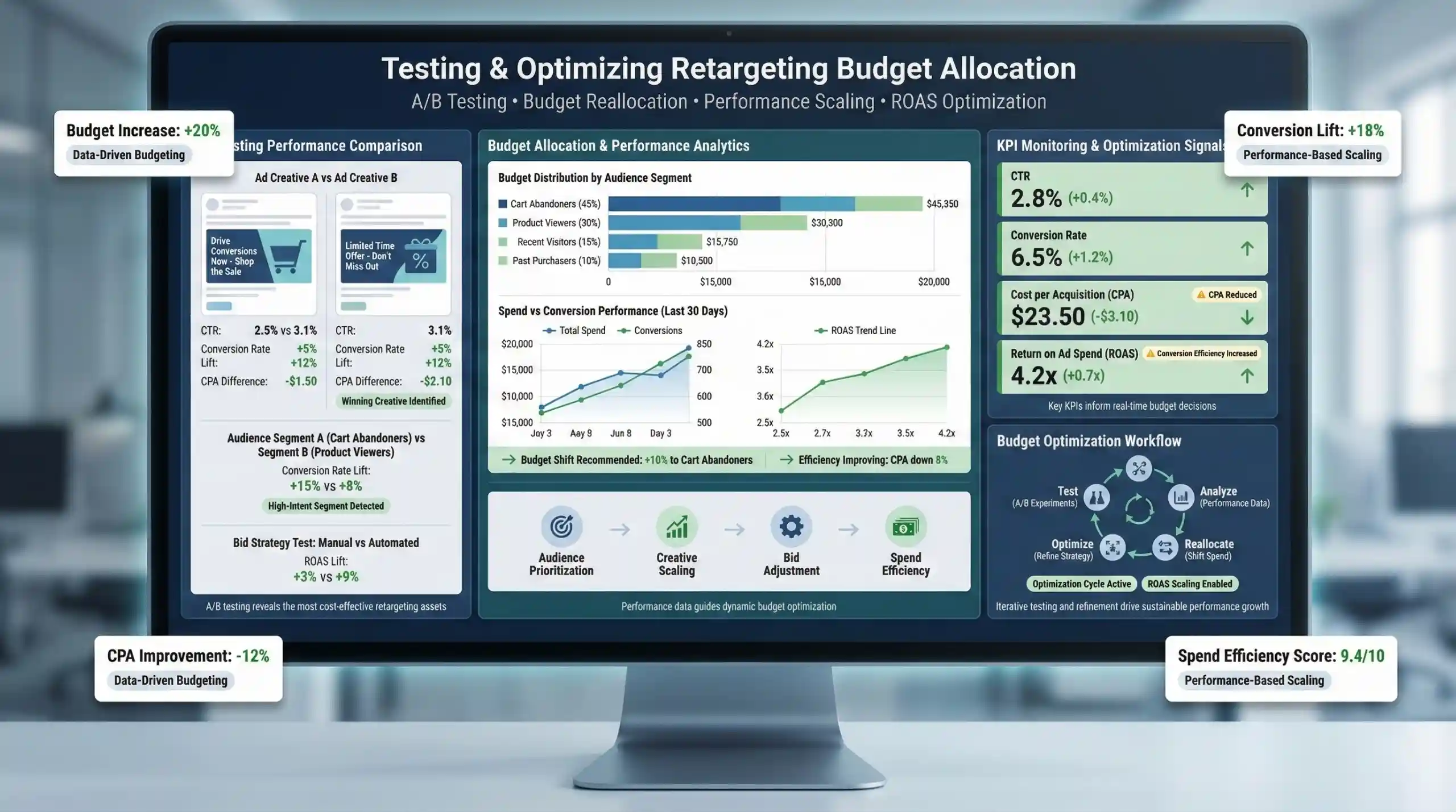 Continuous A/B testing of different audience segments, ad creatives, and bidding strategies allows marketers to identify the most cost-effective retargeting assets. Data from these tests inform budget reallocation, directing more spend toward high-performing segments or ads.