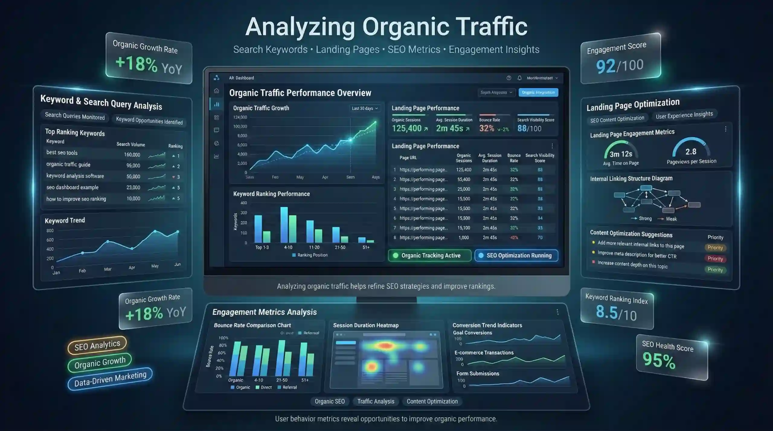 - Organic Traffic: Visitors arriving through unpaid search engine results, reflecting the success of SEO strategies.