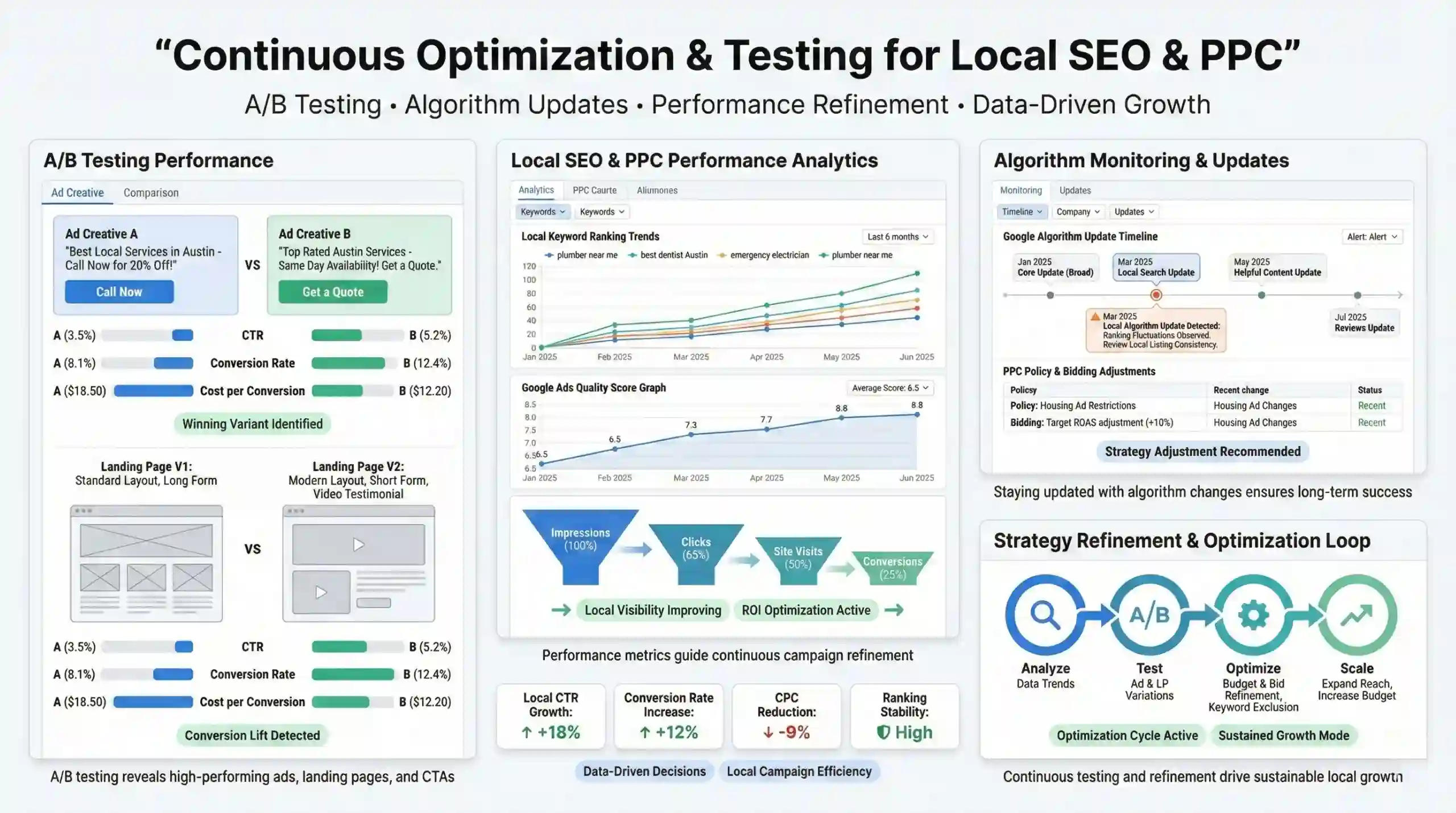 Systematic testing of ad creatives, landing pages, and call-to-actions uncovers the most effective elements for local campaigns.